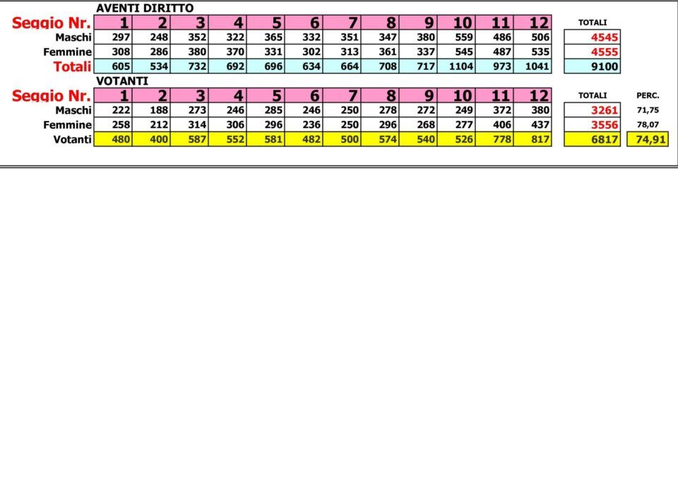 PROCIDA – Questo il prospetto dei votanti per le 12 sezioni: