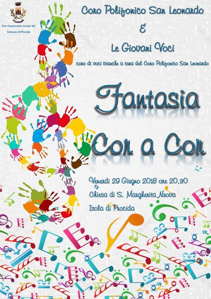 PROCIDA – Venerdì 29 giugno alle ore 20,30 nello splendido scenario della Chiesa di S. Margherita Nuova, Il Coro Polifonico San Leonardo e le Giovani Voci, piccolo coro di voci bianche nato da meno di un anno, presentano un concerto insieme per salutare l’avvento dell’Estate 2018. Si spazia dal classico (i pezzi che i bambini si sono impegnati a studiare durante l’anno) al moderno, dal sacro al profano, per un mix insolito ma come sempre coinvolgente.