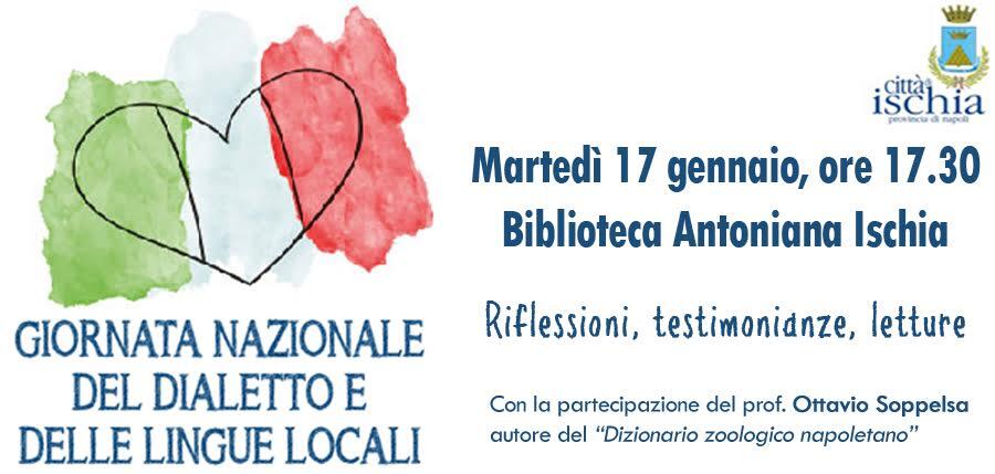 ISCHIA – Patrimonio identitario e prezioso veicolo comunicativo, il dialetto è una risorsa da tutelare e salvaguardare. E’ per questo che, in occasione della Giornata Nazionale del dialetto e delle lingue locali, ideata dall’Unione Nazionale delle Pro Loco d’Italia (UNPLI), il Comune di Ischia ha previsto – attraverso l’assessorato alla Cultura – un evento alla Biblioteca Antoniana, in via Rampe Sant’Antonio, con riflessioni, testimonianze e letture volte “a tutelare un tassello fondamentale dell’identità dell’isola”.