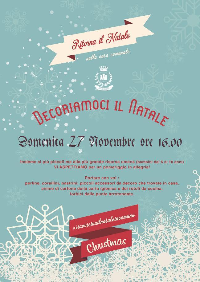 PROCIDA – (c.s.) In occasione dell’ approssimarsi del periodo natalizio torna anche quest’anno DecoriamoCi il Natale, l’appuntamento riservato ai più piccoli per recuperare e riciclare materiali e creare decorazioni natalizie.