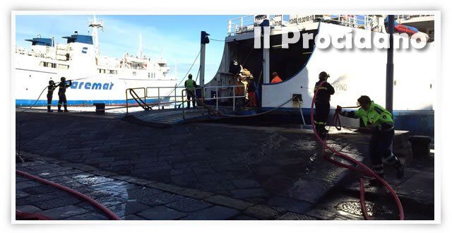 A seguito della chiamata radio del comandante della nave con la quale è giunta l’informazione dell’incendio a bordo, è stata attivata la catena dei soccorsi da parte della Sala Operativa dell’Ufficio Circondariale Marittimo di Procida.