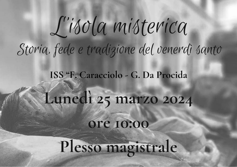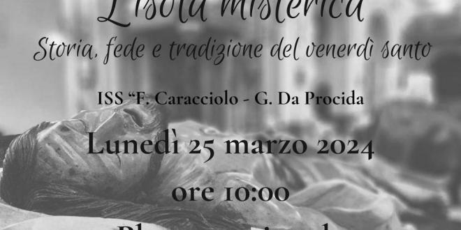 PROCIDA – Nei giorni che precedono la Pasqua, momento particolarmente sentito dall’intera comunità procidana, con i riti che la caratterizzano, lunedì 25 marzo alle ore 10,00 presso il plesso magistrale in Largo Caduti, l’ISS “Caracciolo – Da Procida” ha organizzato l’incontro “L’isola misterica storia, fede e tradizione del Venerdì Santo”.