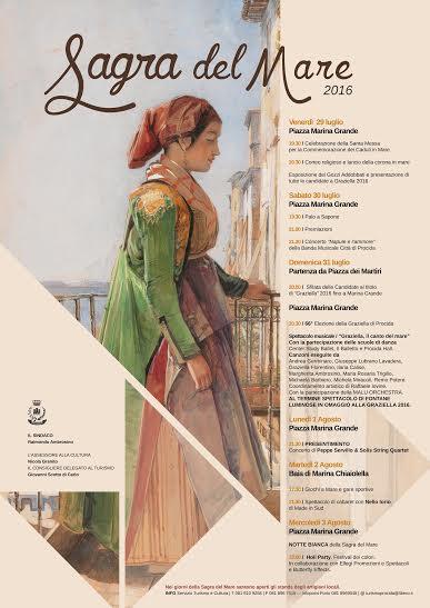 PROCIDA – La 66° edizione della Sagra del Mare 2016 parte venerdì 29 Luglio con la tradizionale celebrazione della Santa messa per la Commemorazione dei Caduti in Mare e il successivo corteo religioso che culminerà nel lancio della corona nelle acque del Canale di Procida.