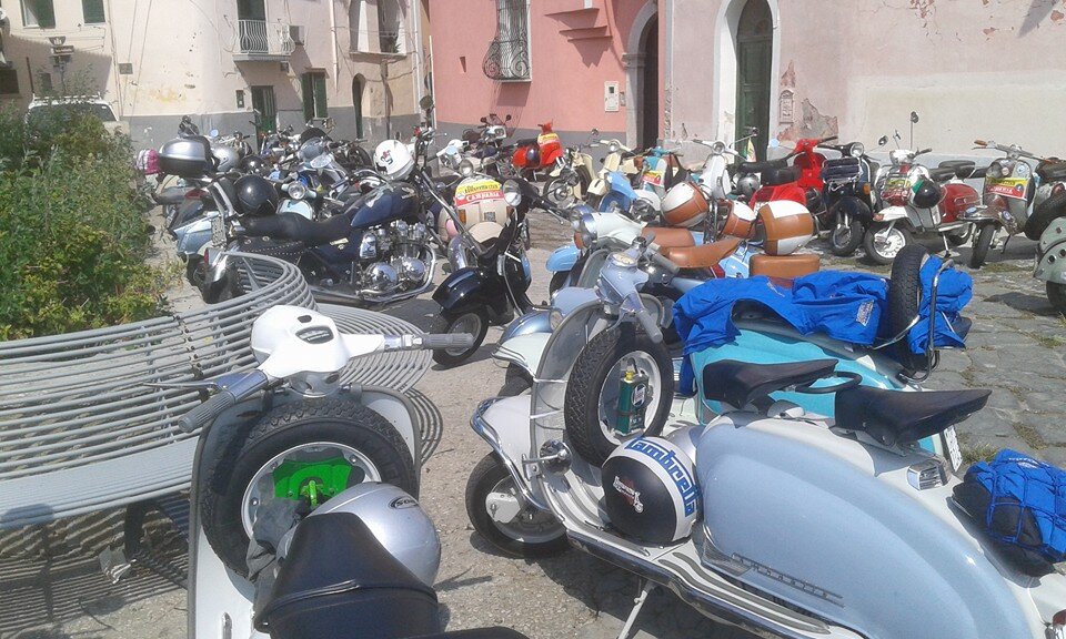 PROCIDA – Questa mattina l’isola di Procida, così come avviene da qualche anno, ha ospitato il nutrito e festoso raduno di vespe e moto d’epoca provenienti da vari comuni della provincia di Napoli e non solo. La foto di Michele Scotto di Vettimo, tra l’altro amministratore del seguito gruppo Fb “Ricordi Fotografici dell’isola di Procida”, le ritraggono in sosta sul belvedere che affaccia sul porto dei pescatori di Corricella.