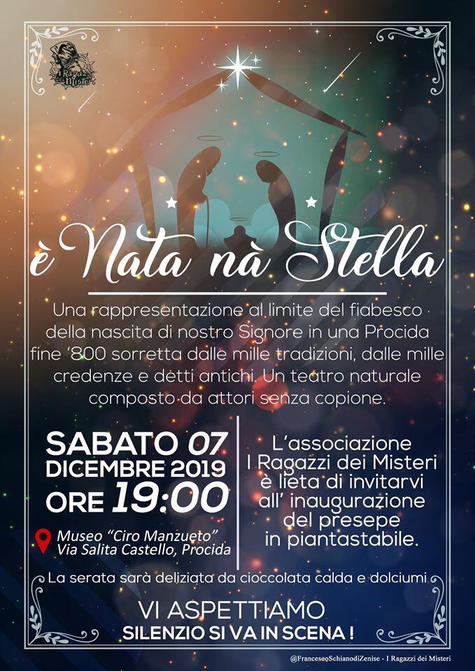 PROCIDA – “E’ nata una stella”. Una rappresentazione al limite del fiabesco della nascita di Nostro Signore in una Procida fine ‘800. Una Procida grezza come un diamante, ma nel contempo piena di sfaccettature, sorretta dalle mille tradizioni, dalle mille credenze, detti antichi tramandati di generazioni. Nostro signore è tra noi, nasce tra noi !Un teatro naturale fatto da attori senza copione.