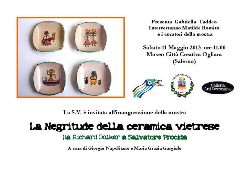 lanegritudeSabato 11 Maggio 2013 alle ore 11,00, presso il Museo Città Creativa Ogliara di Salerno, sarà inaugurata la mostra: “La negritude della ceramica vietrese – Da Richard Dölker a Salvatore Procida”, curata da Giorgio Napolitano e Maria Grazia Gargiulo.