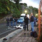 Sangue, sangue, sangue e ancora sangue sulle strade dell’isola d’Ischia. Dopo la tragica morte del Maresciallo dell’Esercito Clemente Buono avvenuta venerdì scorso 18 maggio a seguito del drammatico incidente registratosi nei giorni scorsi a Casamicciola Terme, in via Castiglione, strada negli anni già teatro di numerosi sinistri mortali, nel tardo pomeriggio di martedì, a poche centinaia di metri di distanza, e precisamente a confine tra il Comune di Lacco Ameno e Casamicciola, nei pressi dell’eliporto, come dimostrano le foto di Franco Trani, un nuovo, funesto incidente stradale ha letteralmente sconvolto la quiete dell’isola Verde.