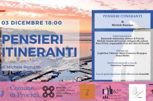 PROCIDA – Giovedì 3 novembre ore 18,00 presso la Sala Pio XII a Chiaiolella, verrà presentato il libro del nostro carissimo amico e maestro Michele Romano “Pensieri itineranti” per edizioni Fioranna. Una raccolta di pensieri, filosofia, riflessioni, dentro e fuori l’orizzonte della sua Procida, scritti negli ultimi anni. Lo stupore, la meraviglia, la presenza- assenza, la polis micaelica, gli insegnamenti …
