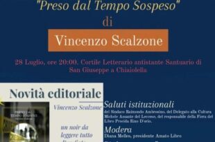 PROCIDA – Nell’ ambito della 63° Fiera del Libro di Procida, Venerdì 28 luglio alle ore 19.00, Cortile Letterario alla Chiaiolella, antistante il Santuario di San Giuseppe, l’Associazione Amato libro presenta un’avvincente storia che corre sul filo del tempo, tra passato e presente, tutto legato dal mistero di un numero! “Preso dal tempo sospeso” di Vincenzo Scalzone. Omar giornalista e …