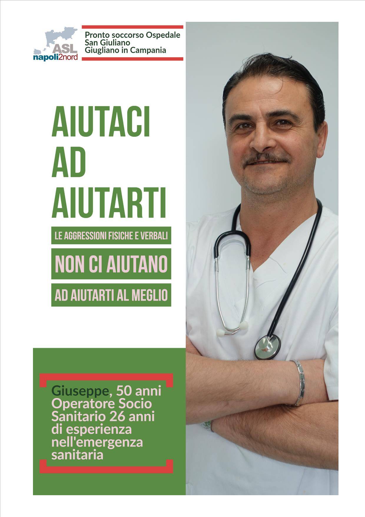 Violenza sugli operatori sanitari. L’ASL Napoli 2 Nord lancia la campagna “Aiutaci ad Aiutarti”. Protagonisti diventano i volti degli operatori del Pronto Soccorso